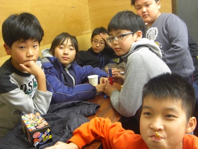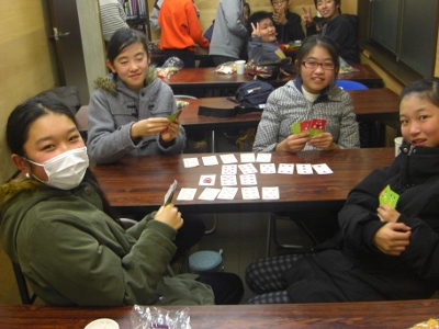 本部教室へみんな集まって遊んだり、ビンゴ大会をした後、生駒神社へ向かい、新年を迎えました。